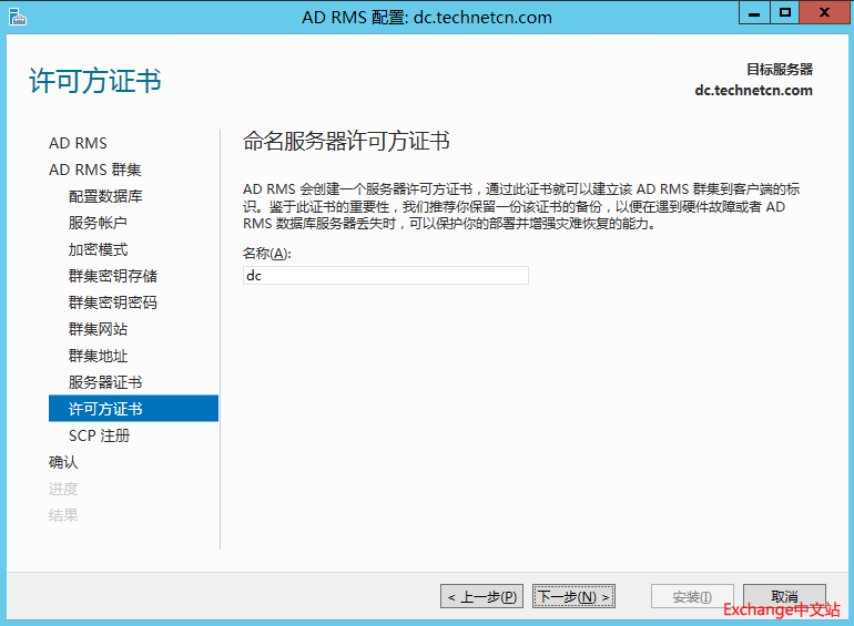 选择创建新的AD RMS 根集群。下一步。