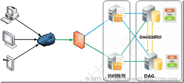 两台CAS使用Windows NLB做负载均衡,两台MBX做DAG高可用组。