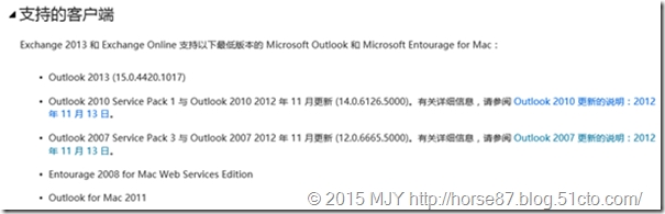 由于Exchange Server 属于比较新的微软基础架构产品,所以对计算机客户端有一定的要求,按照微软官方网站上的“支持的客户端”,请仔细查看: