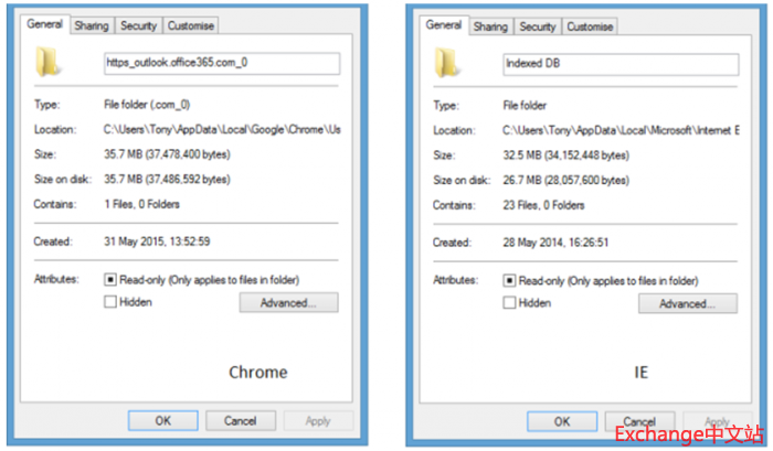不同的浏览器会以不同的方式缓存用户的邮箱。在微软的Surface上,IE浏览器使用ESE数据库,例如Exchange,但和传统的ESE数据库不同,因为它所使用的数据库(Internet.edb)支持HTML5标准,数据库大小为22,592KB。Chrome浏览器将用户数据缓存在WebSQL的数据库中,大小为36,696KB。在启用离线访问后,您可以定制任务在邮箱数据相对静态的时候(比如说礼拜天下午)让浏览器去下载新的邮件。当然,缓存的数据必须被保护起来,不然一旦用户的PC被非法登陆,入侵者就会截取到邮件数据,Bitlocker是数据保护的一个不错的软件。