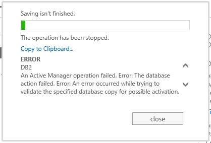 - An error occurred while trying to select a database copy for possible activation (事件4087).