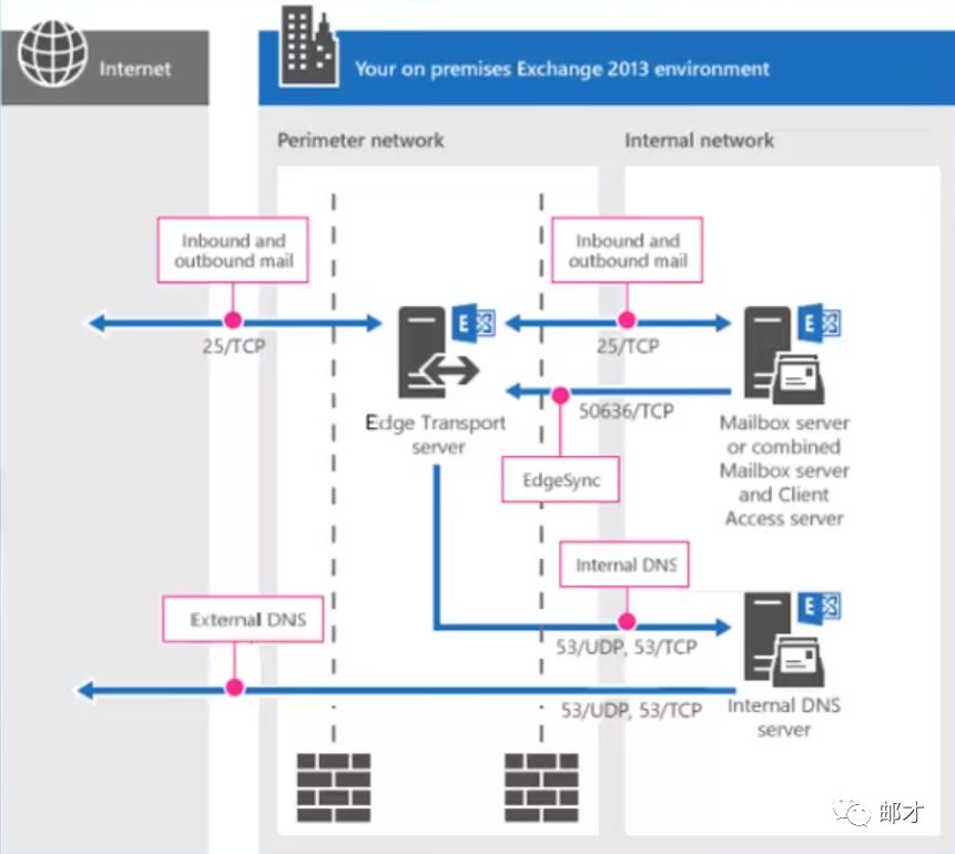 - 修改内部Exchange服务器的传输配置,以区分边缘和内部网络