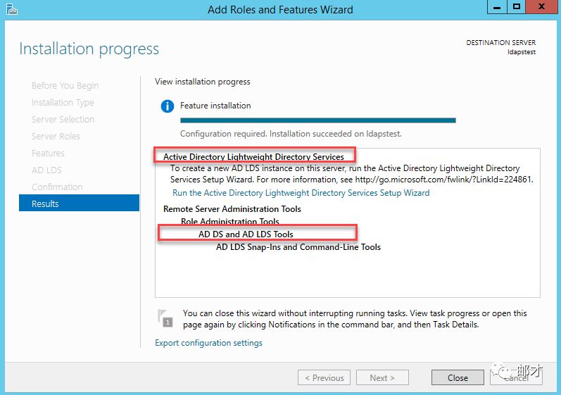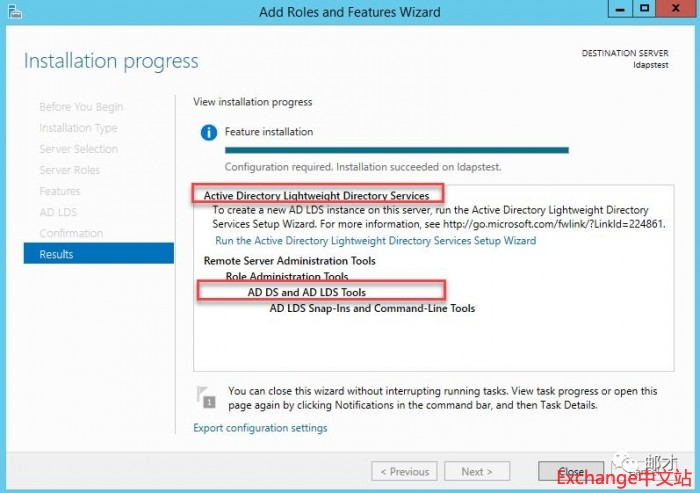 - 从服务器管理器添加ADLDS角色及管理工具;