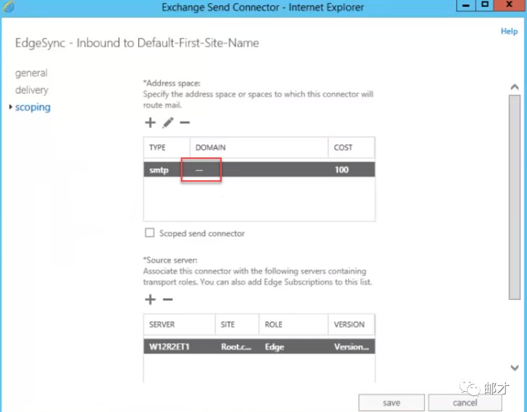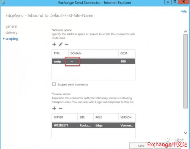 配置完成后,Edge服务器上会多一个到内部的发送连接器,作用域是“–”,不用担心,这个显示是正常的。