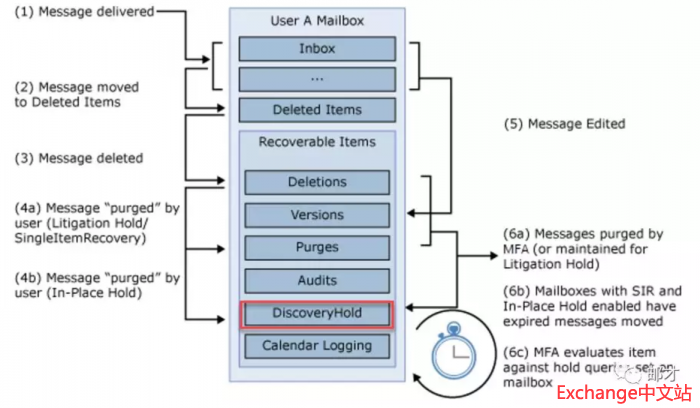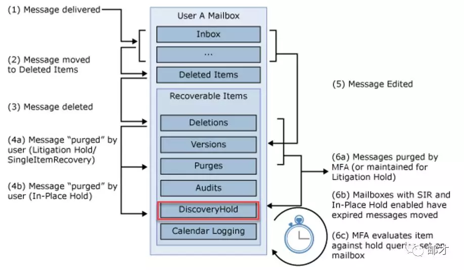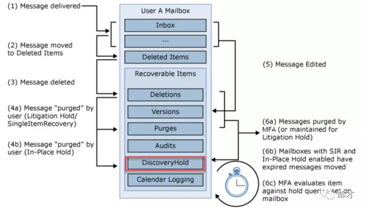 上周我们讲了Exchange的诉讼保留,对于启用保留的邮箱,清除的邮件不移到清除子文件夹,而改为移至 DiscoveryHolds 子文件夹并指定就地保留的保留持续时间内保留。收到或创建和定义 DiscoveryHolds 子文件夹中的项目保留多长时间的项目,将从原始日期计算保留持续时间。