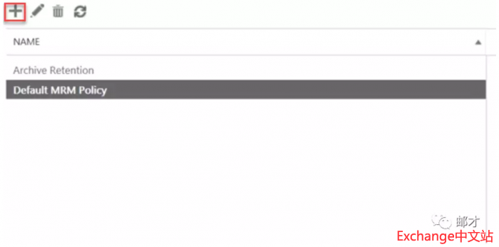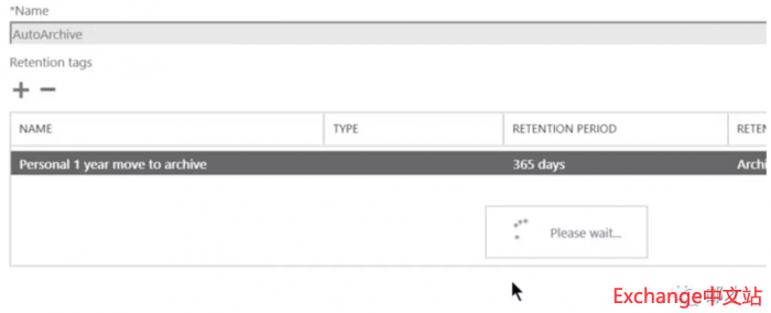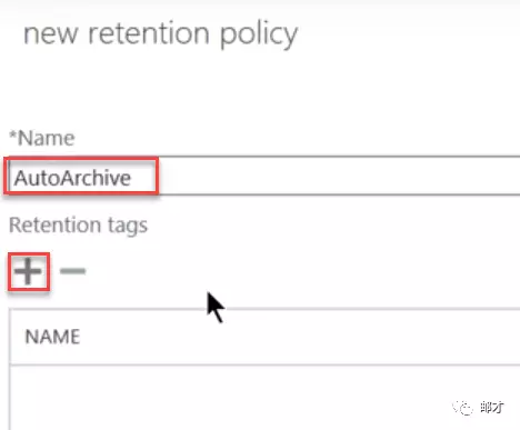 比如说我们新建一个自动归档策略,对于超过一年的邮件进行移入归档目录的操作。进入ECP的“合规性管理”–>“保留策略”,单击加号以新建保留策略。
