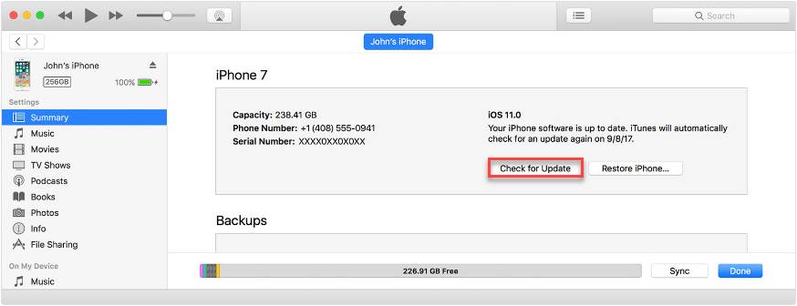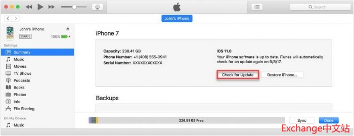 离线安装包或者iMAC的升级可以通过iTunes实现,进入iTunes界面,选择检查更新。