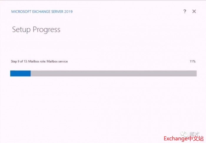 安装完上述三个组件后,完成Schema与AD的拓展,这里小编不再赘述。整个安装过程在一个半小时左右(不包括组件安装),当然小编的硬件环境是四颗vCPU和16GB内存,官方的硬件标准称Exchange 2019可以支持到48核CPU和256GB内存,另外支持SSD硬盘。GUI安装界面依然与前两个版本一模一样。