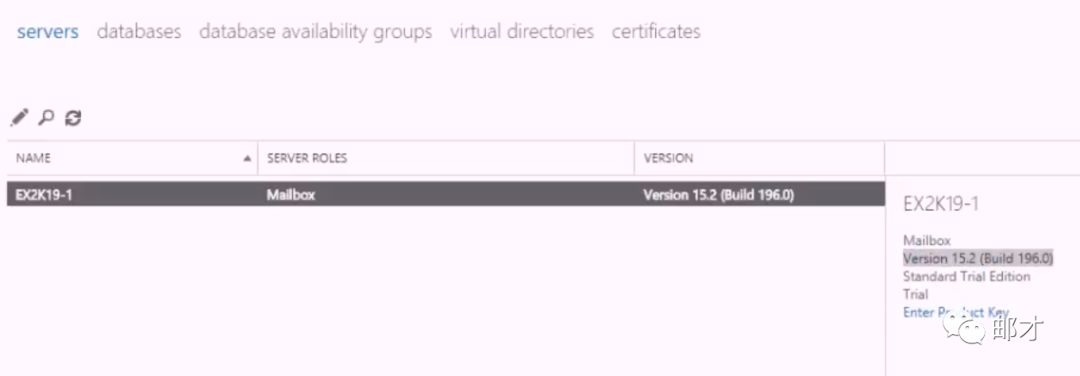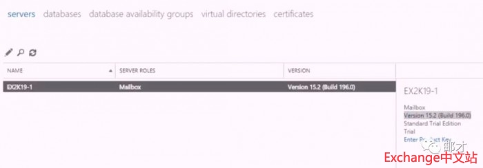登录EAC之后,与小编预想的一样,2019的大版本号没有变化(15.2),如果把Exchange Server 2013 CU4称谓Exchange 2013 SP1(官方叫法), Exchange Server2016成为Exchange 2013 SP2(民间叫法),那这款产品可以称作Exchange 2013 SP3。