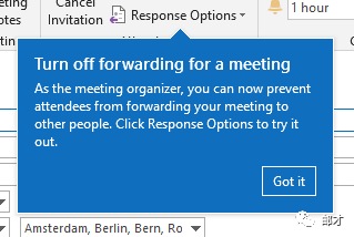 在用户体验与安全上,Exchange 2019不管是OWA还是Outlook客户端都没有特别显眼的亮点,除了小编发现对于特定的会议,组织者可以禁止与会人员转发,这个功能可以避免组织者与参会人员对于会议保密性的理解误差。