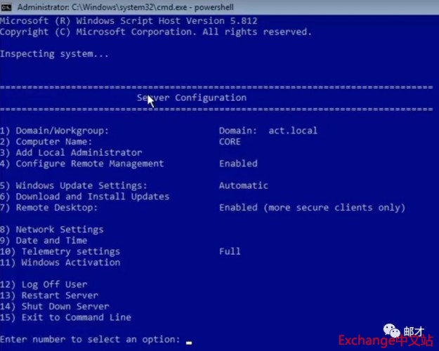 接下来运行sconfig查看我们当前的系统配置(输入任意号码可以修改对应的配置)。