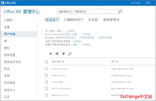 按如下所示,您现在应具有每个 Gmail 邮箱的 Office 365 邮箱。此时,Office 365 仅收到此处列出的其他用户的电子邮件。来自 Office 365 外部的邮件将继续发送到 Gmail在接下来的步骤中,您将连接到 Gmail,并将电子邮件从 Gmail 复制到 Office 365,将 Office 365 配置为接受发送到 Gmail 的所有传入电子邮件。