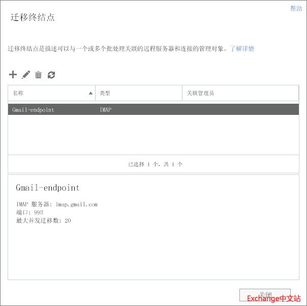 10、选择“新建”保存迁移终结点。 11、“迁移终结点”页面将出现并显示刚刚创建的终结点。 ![]()