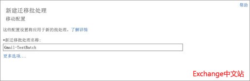 5、选择“下一步”。 6、在“IMAP 迁移配置”页上,选择“下一步”。 7、在“移动配置”页上,为新的迁移批处理输入新名称。本示例将使用“Gmail-TestBatch”。选择“下一步”。