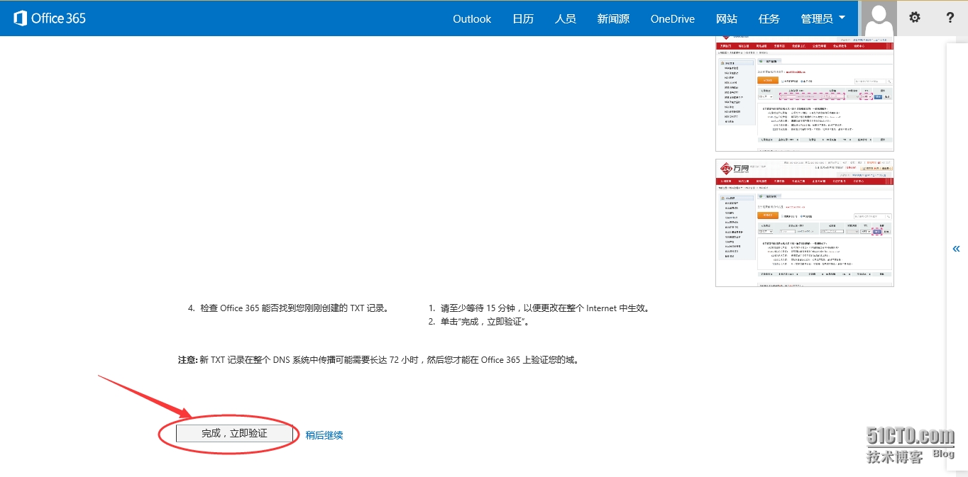 - 添加TXT记录后至少等待15分钟(具体看解析生效时间),点击“完成,立即验证”