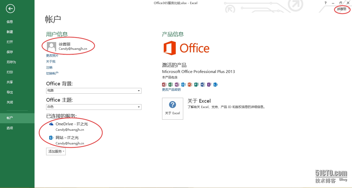 可以看到很轻易的就把账户切换为Candy了,而且连接到了OneDrive和网站。这样文件保存时即可选择保存在SharePoint网站或是OneDrive了。