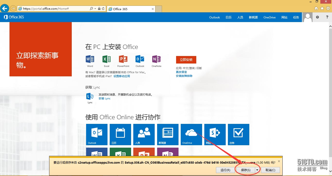 使用用户账号密码登录O365,点击”立即安装“下载Office 365即点即用程序。