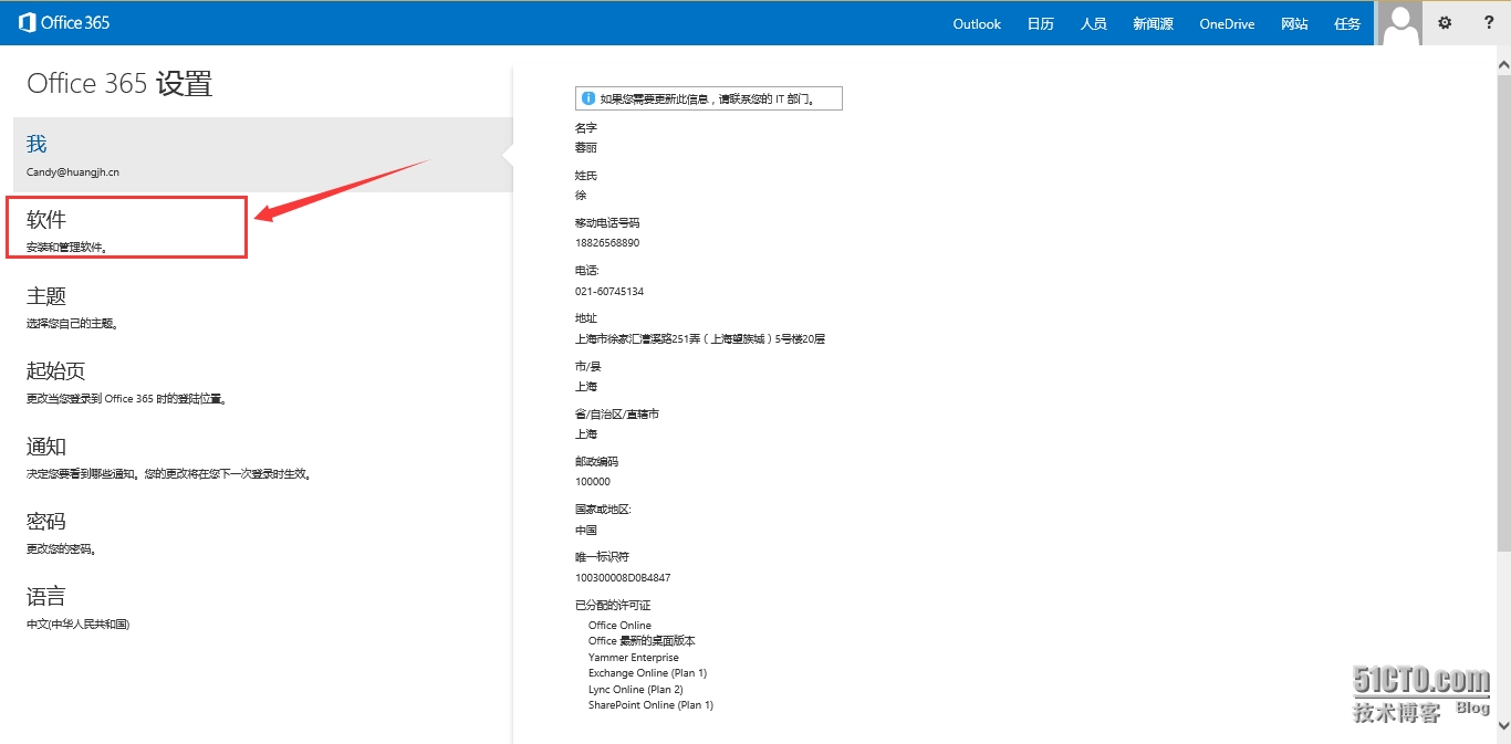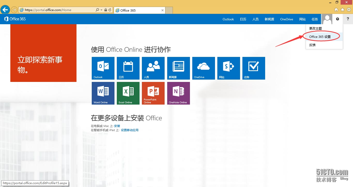 回到O365,点击“Office 365设置”,如图: