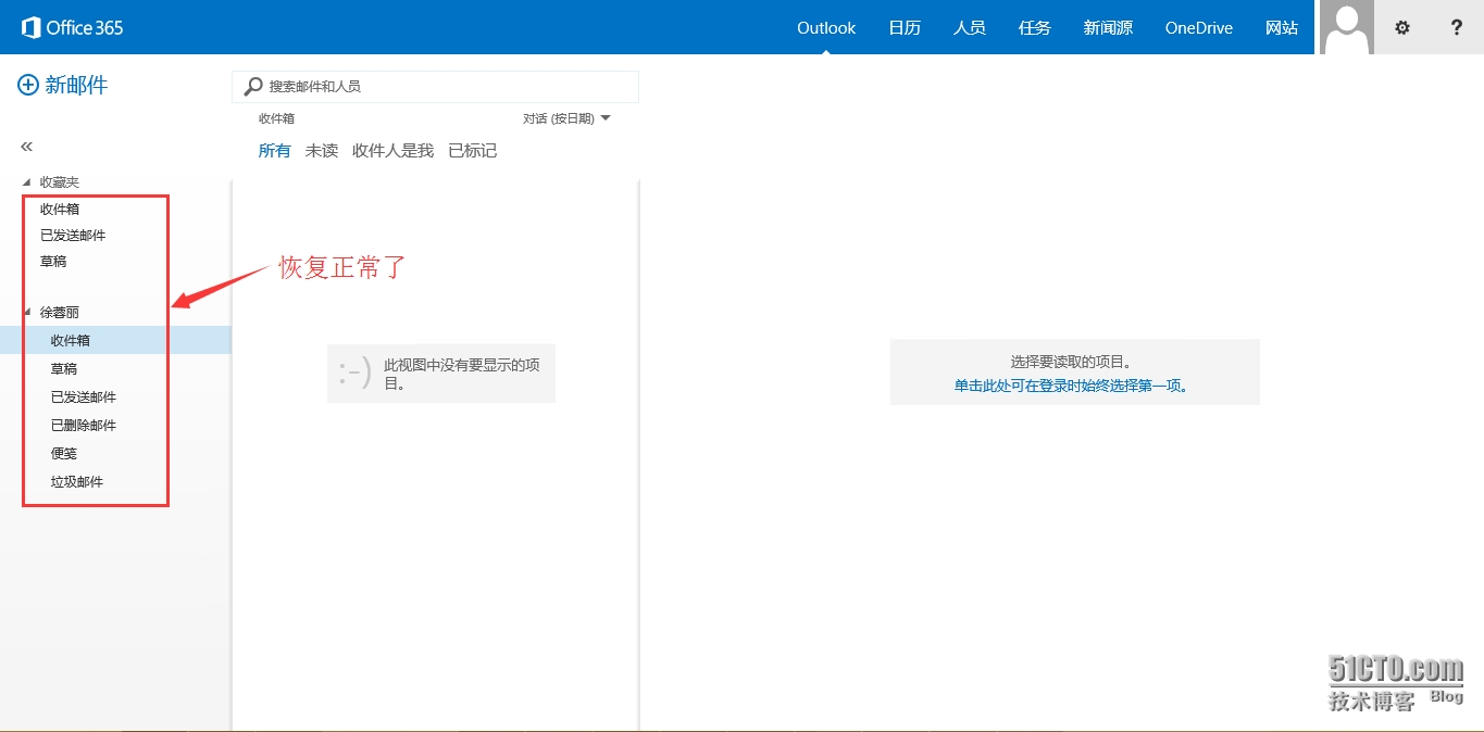 - 再次点击“Outlook”可看到已经恢复正常了,以后登录的时候再也不会有这种问题了。