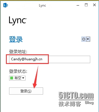 - 打开Lync 2013客户端,输入登录地址,点击“登录”