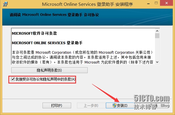 - 运行程序Microsoft Online Services 登录助手(msoidcli_64),点击”安装“