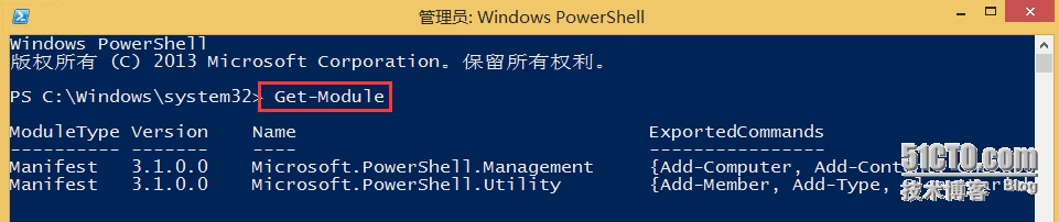 - 运行命令”Get-Module”, 可看到目前只有2个模块的