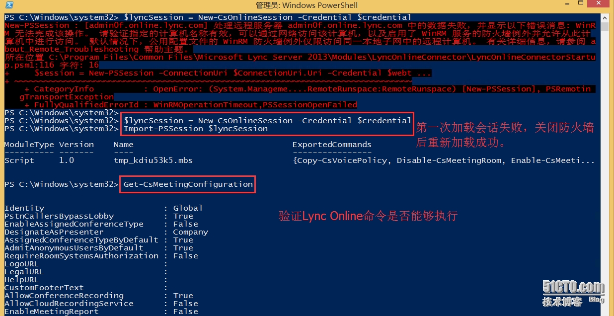 - 运行命令” Import-Module LyncOnlineConnector”导入Lync模块,会发现报错”在此系统上禁止运行脚本“如下图: