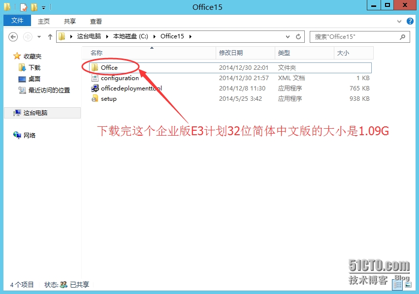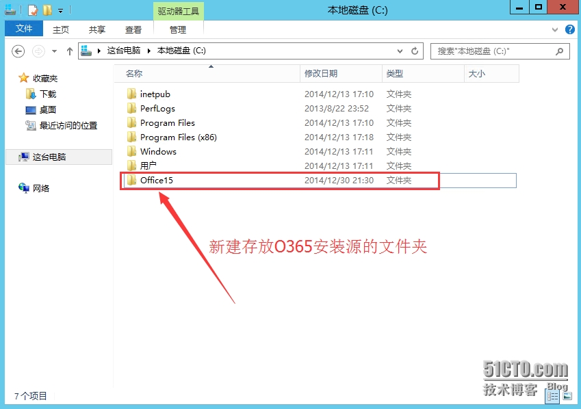 - 新建用于存放O365安装源的文件夹“Office15”