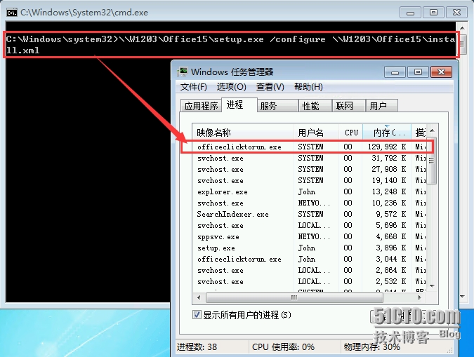 注:当然我们可以将此命令编辑成BAT文件,复制到客户端后,用户只需以管理员身份运行该文件即可静默安装Office365 ProPlus