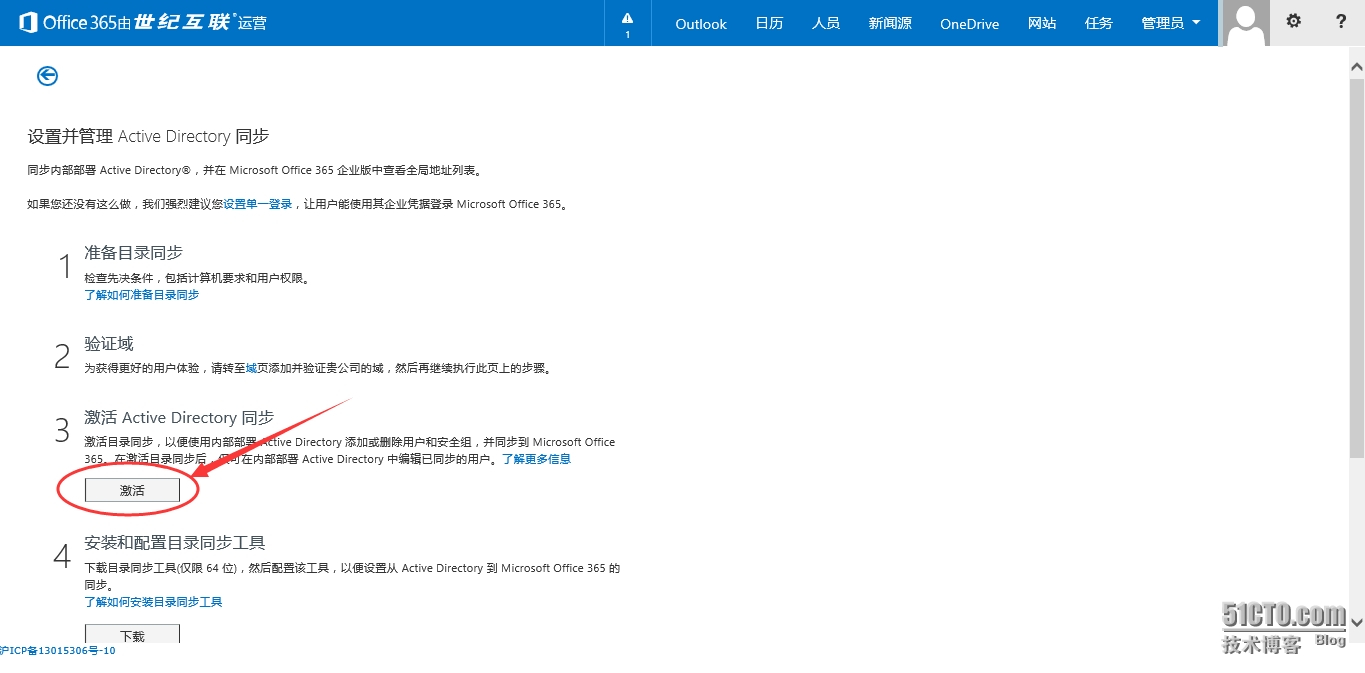 3.3 安装活动目录同步工具(可从O365管理中心下载),运行安装程序,点击“下一步”