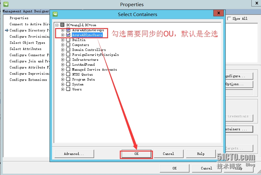 此时配置成功后会自动将本地AD新创建的所有用户和安全组同步至Azure AD,那么在实际环境中一般只需要同步特定的OU中的用户。可以通过以下步骤修改。