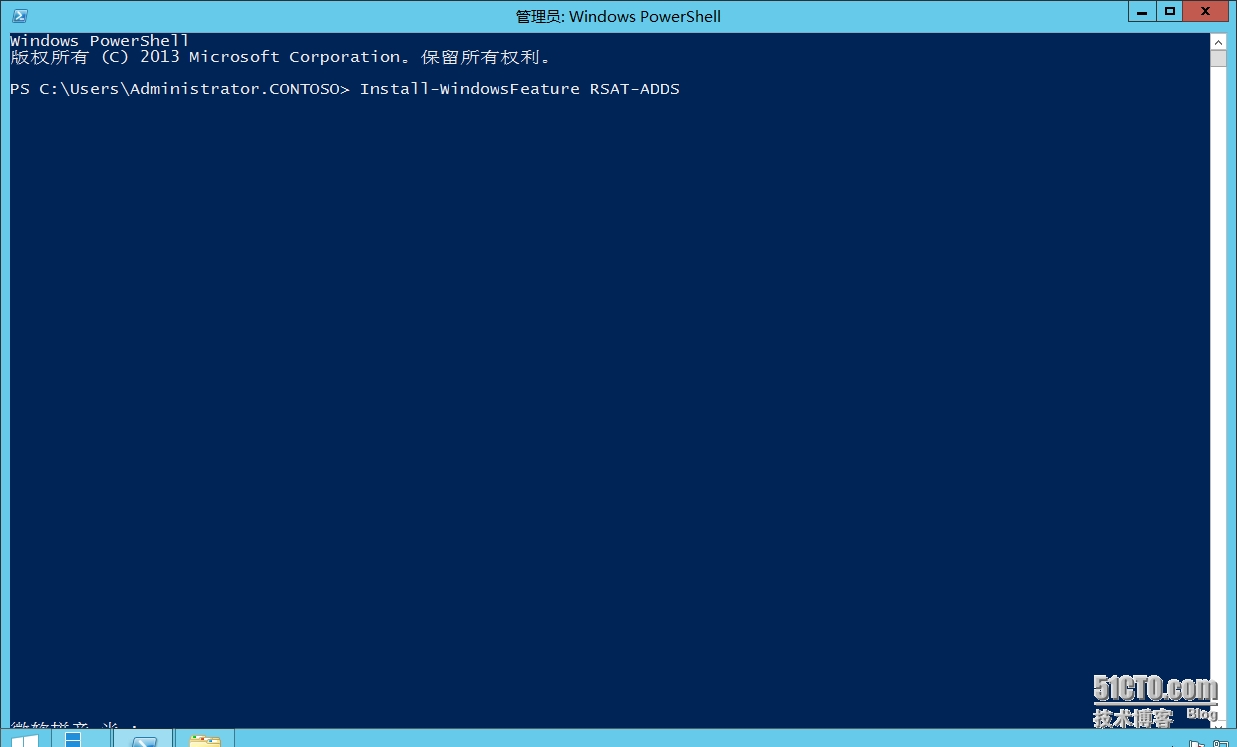 2.输入Install-WindowsFeature RSAT-ADDS(这步是可选的),意思是安装远程服务器管理工具