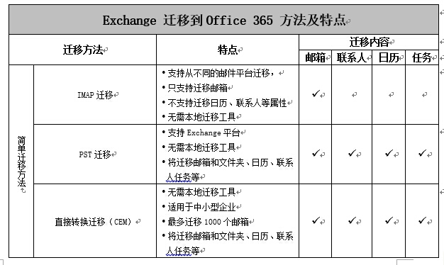 如果想将一个其他平台的邮件服务器迁移到Office 365中,根据不同的场景可以有几种不同的迁移方式,基本可以分为以下几种