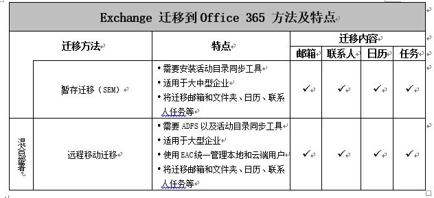 l 您必须实现混合部署,才能将2,000 多个 Exchange 2010 或 Exchange 2013 邮箱迁移到 Exchange Online。