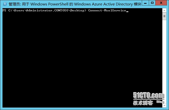 8.打开Powershell for Windows Azure AD,输入connect-MsolService连接到Azure AD