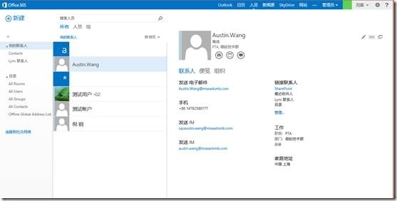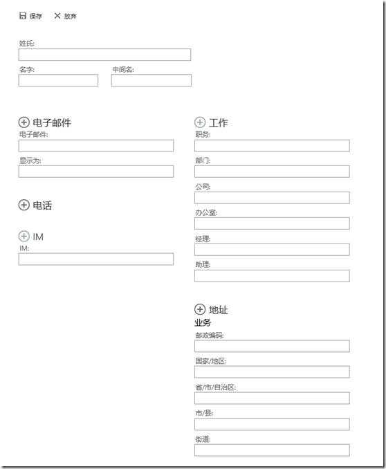 左边为分组导航栏\中部位具体组中的所有联系人\右部为选定的联系人具体信息