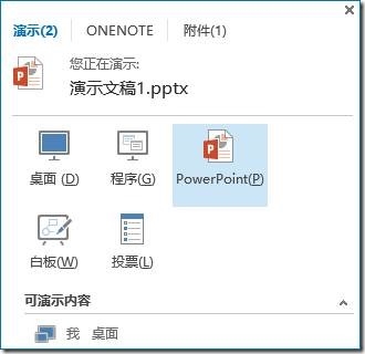 1. 将鼠标悬浮在共享按钮图标上,单击 PowerPoint。