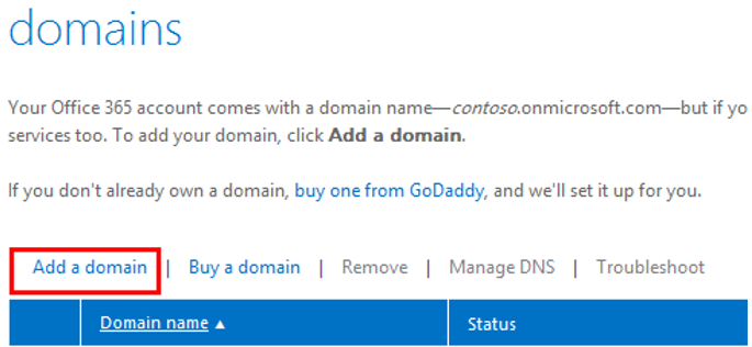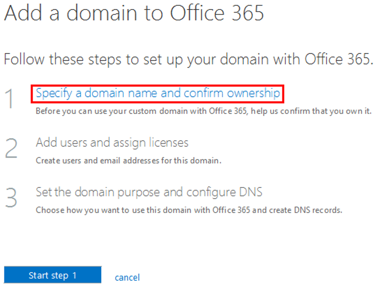 作为Office 365 Exchange混合部署的第一步,需要在云端配置属于自己的域。