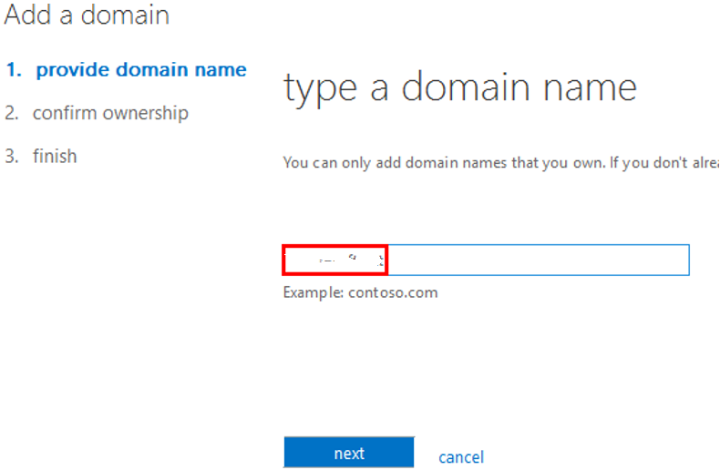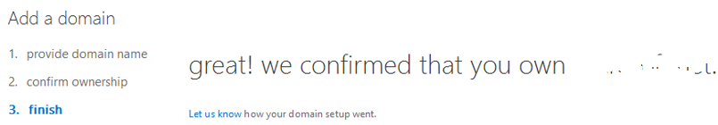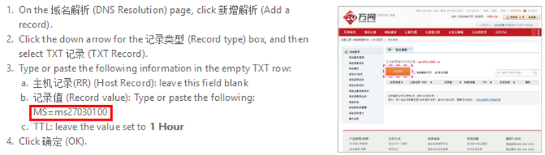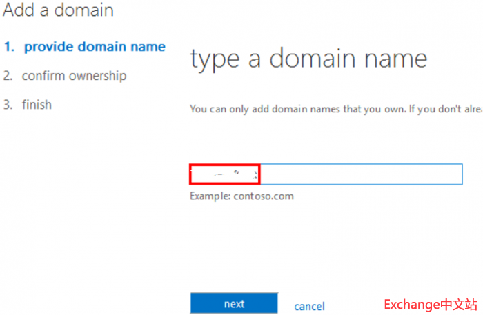 键入域名,注意Office365会检查并确认你是此域名的所有者。