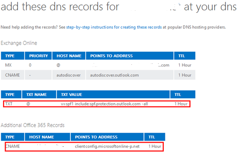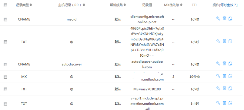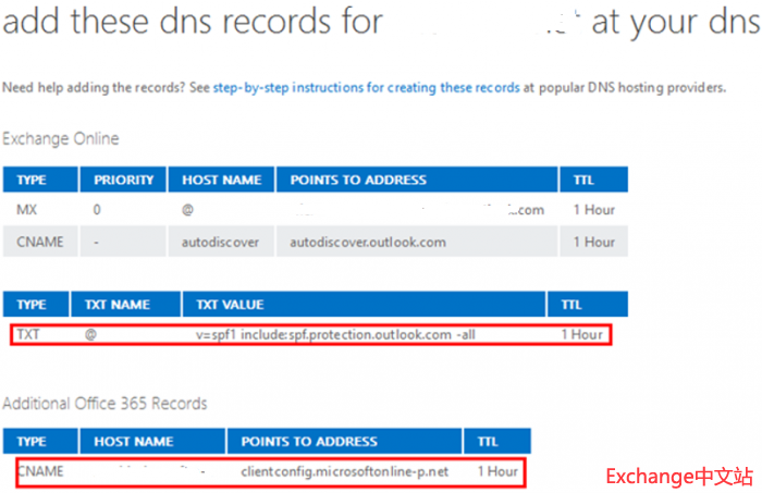 - 根据提示添加SPF和额外的DNS记录。Autodiscover和MX记录已经存在,无需再次创建。