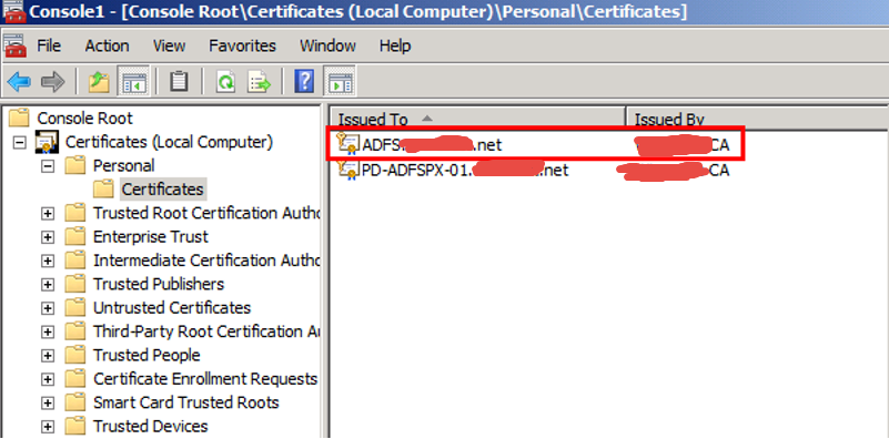 - 配置ADFS Proxy前先导入已申请的第三方证书并为IIS绑定该证书。