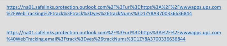 抛开“安全链接”的头部,我们要比较的无非是https%3A%2F%2Fwwwapps.ups.com%2FWebTracking%2Ftrack….和https%3A%2F%2Fwwwapps.ups.com%40WebTracking.email…哪个是钓鱼网站?