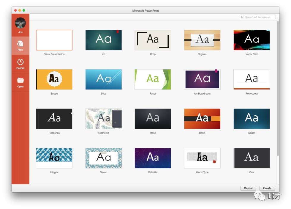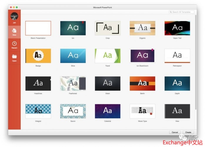 然后不管收件人在企业内部还是外部,不管用的是PC机还是移动终端都可以编辑分享的对象。 - 丰富的Powerpoint模板:有项统计显示,高层管理人员都是PPT的好手,如何做好一个PPT,模板很重要。一个清新脱俗的模板加上条理清晰的内容就是引人入胜的无声讲稿。O365自带各种云模板,包括Word的,Excel的和PPT的,你可以自由选择,合意的可能需要收费哦~