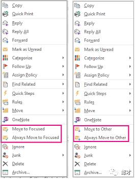 这两个邮件夹是按发件人的被答复率分拣的。在一个庞大的企业中,每个用户需要关注的邮件其实是小部分,当然O365也提供了手动分拣的容错机制。