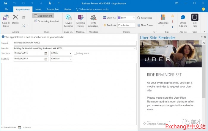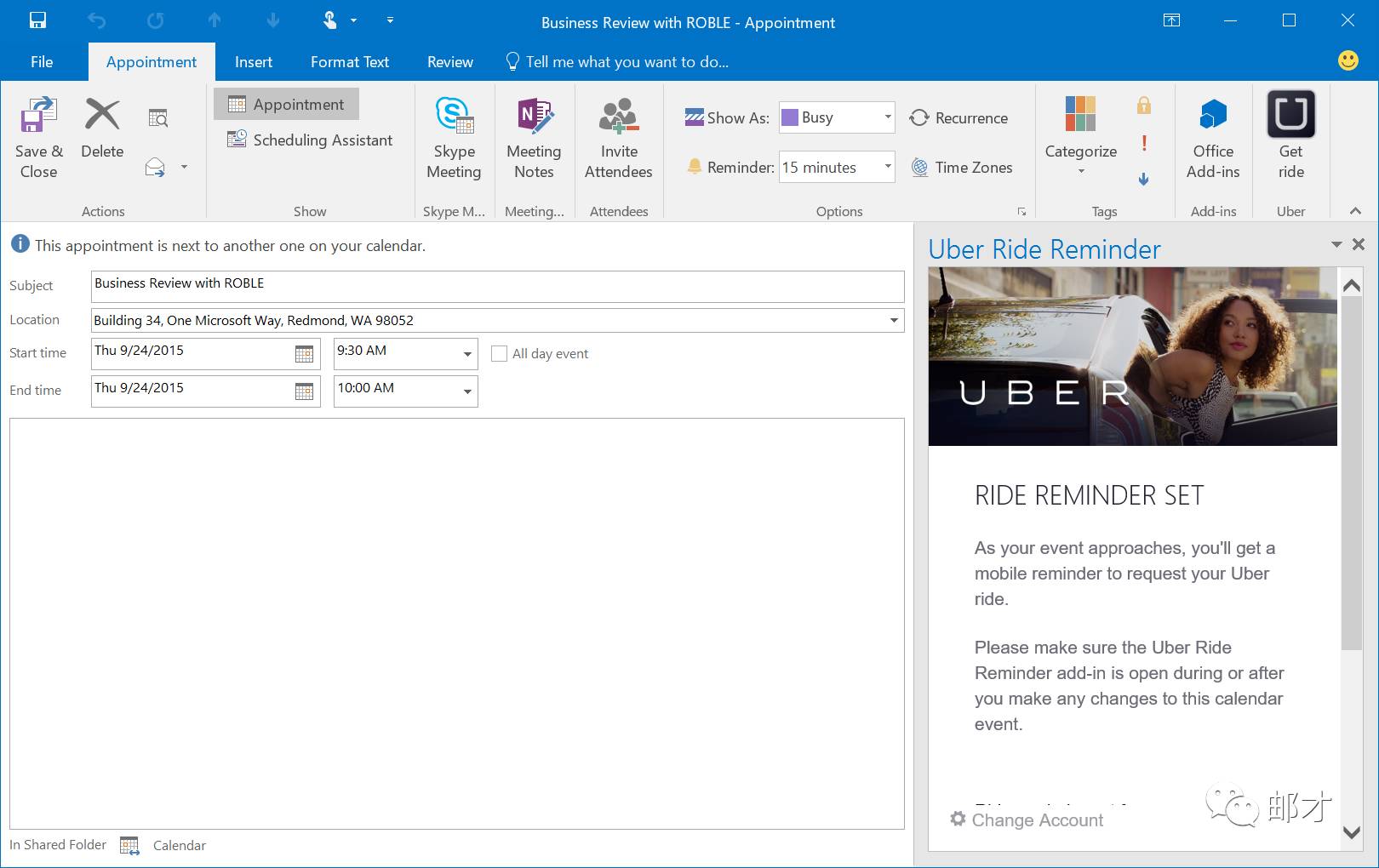 - 强大的Outlook插件:谷歌地图的插件我就不说了,反正国内也用不了。– 某步的插件,让你在outlook中就能预约出行时间。