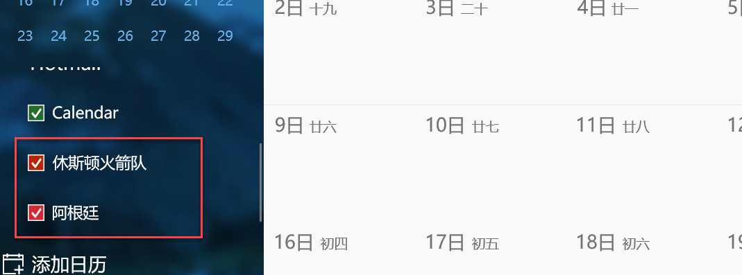 win10自带的日历功能也有一些亮眼之处,例如,它可以整合各种赛事日历和各国的节假日日历。关注你喜欢的球队,让你工作娱乐两不误。