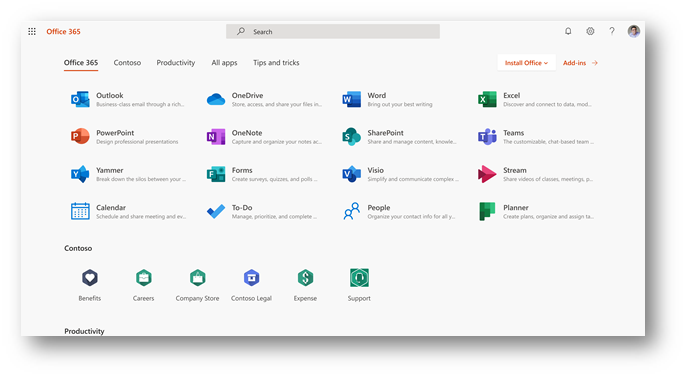 最后,微软为管理员提供了将应用程序分组、和自定义 Office 365 画廊视图的功能,以便用户能够浏览和了解可用的应用程序。